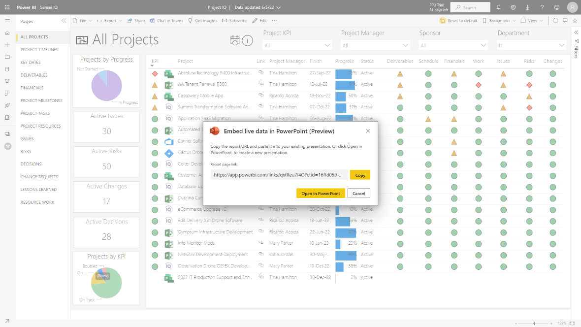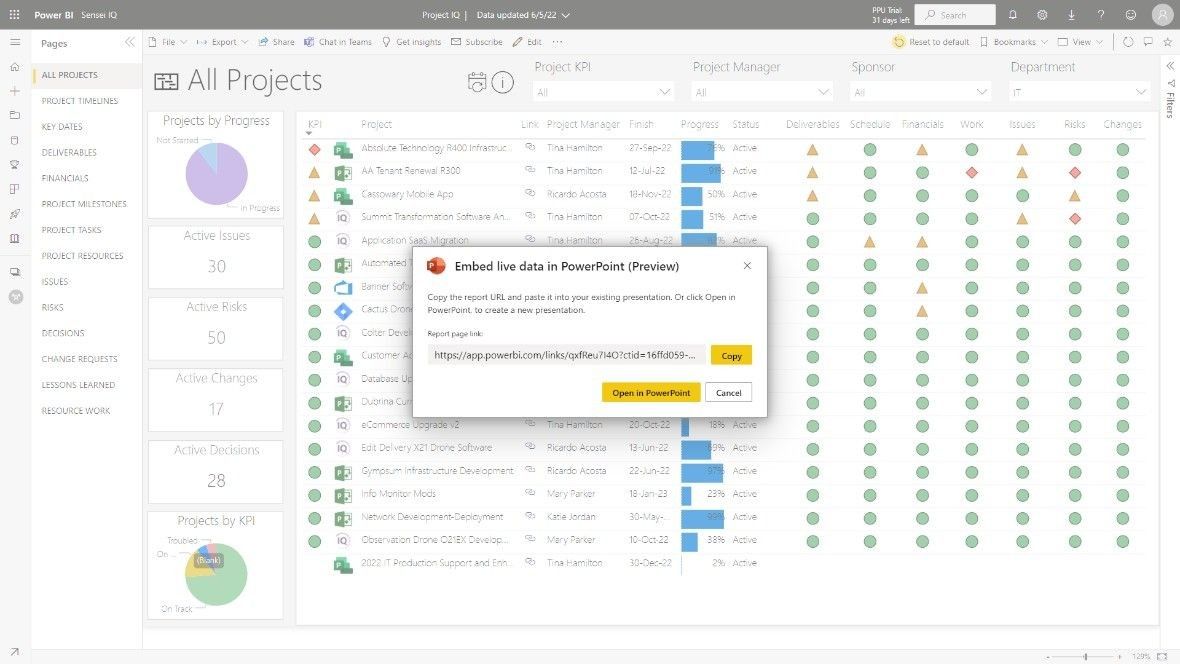 Figure 7 – Power BI Report in PowerPoint (All Projects)