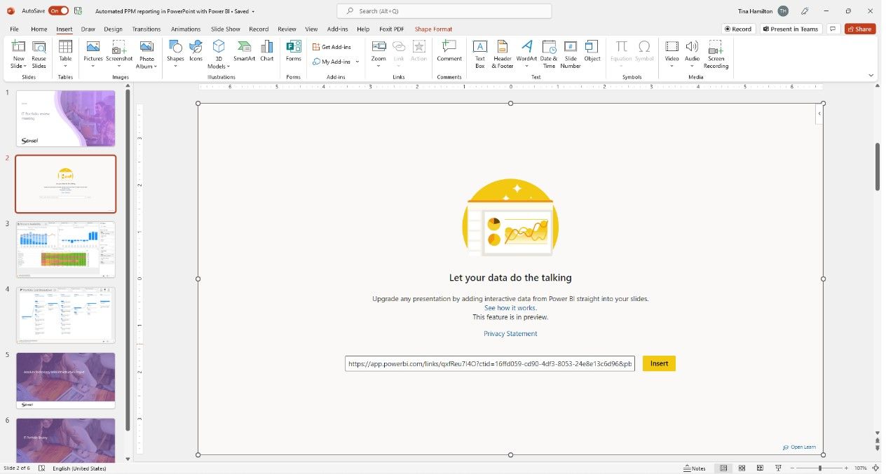 Figure 4 – Adding the Power BI Report to PowerPoint (Option 2)