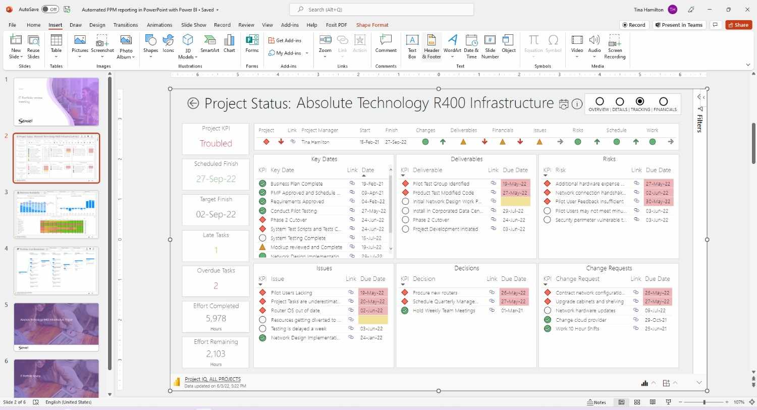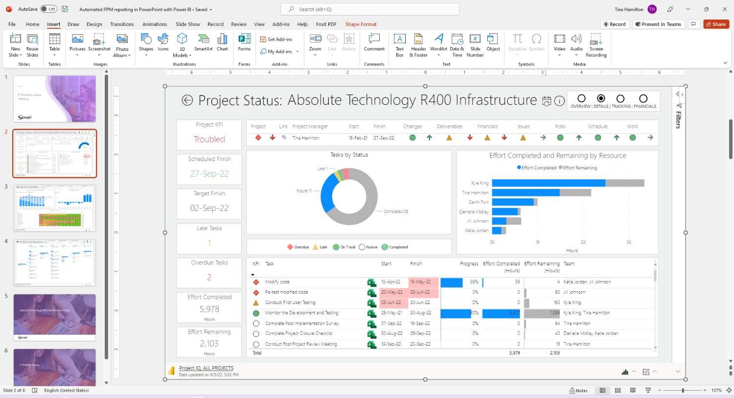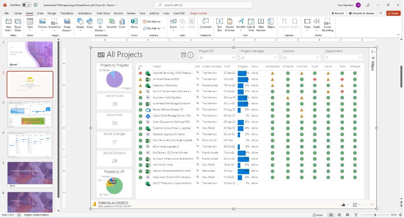 Figure 9 – Power BI Report in PowerPoint (Project Tracking)