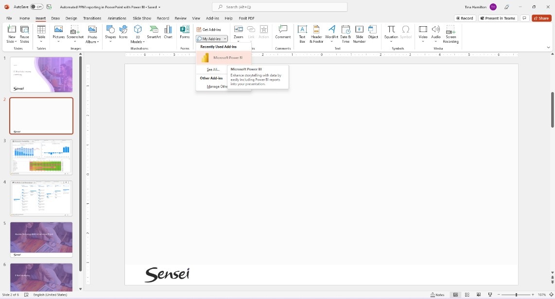 Figure 2 – Accessing the Power BI Add-in for PowerPoint